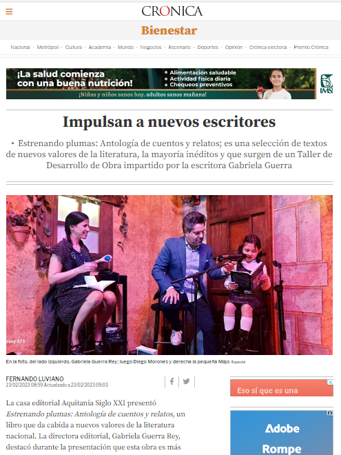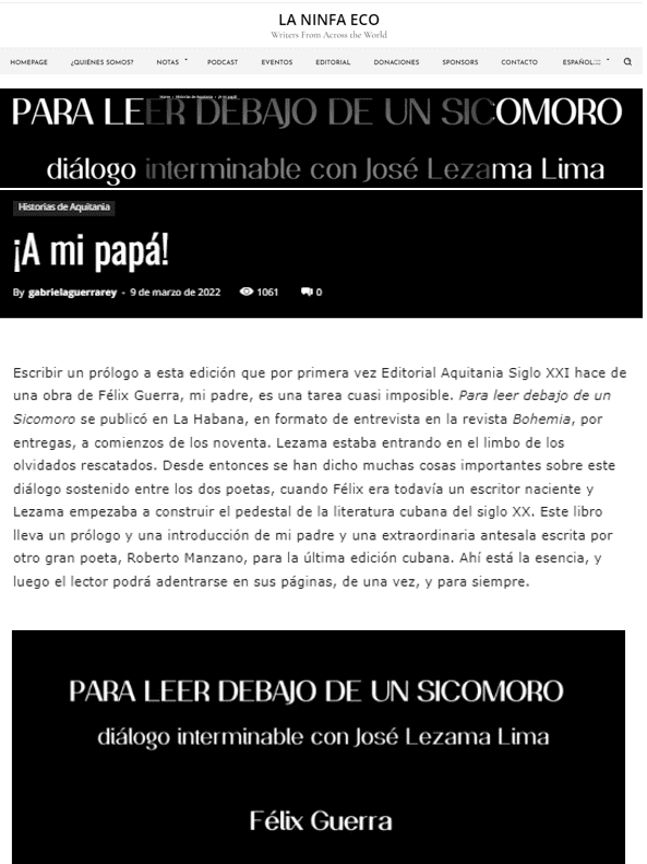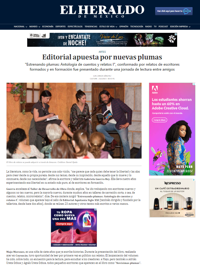 A través de la revista digital A4MANOS, fundada hace más de 15 años por Guerra Rey, Aquitania mantiene hoy vivo un espacio de difusión literaria gratuito, inclusivo y de alta calidad, que ha impulsado a decenas de nuevas voces y se ha consolidado como un archivo poético y narrativo de nuestro tiempo. Estrenando plumas, publicado en 2022 compila algunos de las nuevas voces que ha recibido la revista o han sido parte de los talleres literarios que se imparten desde el proyecto Aquitania.